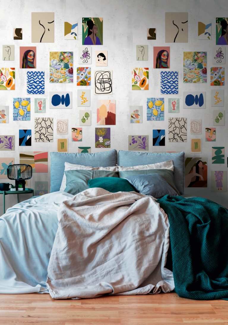 Anschließend werden ca. 10 cm des Abdeckpapiers in der ganzen Breite abgezogen und die Fototapete wird auf den vorbereiteten Untergrund fixiert. Nun wird schrittweise mit dem Gummi-Rakel von der Mitte bis zu den Rändern die Luftblasen und Wasserreste weggedrückt.