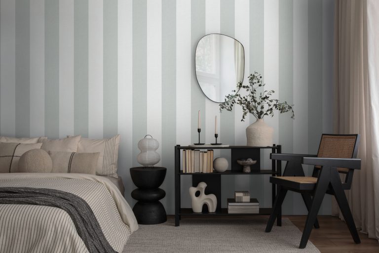 Anschließend werden ca. 10 cm des Abdeckpapiers in der ganzen Breite abgezogen und die Fototapete wird auf den vorbereiteten Untergrund fixiert. Nun wird schrittweise mit dem Gummi-Rakel von der Mitte bis zu den Rändern die Luftblasen und Wasserreste weggedrückt.