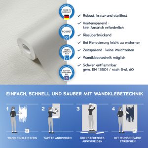 Der Untergrund muss eben, glatt und frei von Fett und Trennmitteln sein und darf nicht saugfähig sein. Vor dem Aufkleben der Fototapete muss der Untergrund und die Qualität des Druckes geprüft werden.