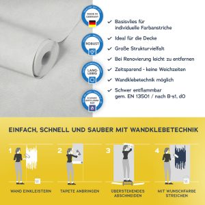 Der Untergrund muss eben, glatt und frei von Fett und Trennmitteln sein und darf nicht saugfähig sein. Vor dem Aufkleben der Fototapete muss der Untergrund und die Qualität des Druckes geprüft werden.
