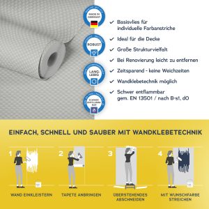 Der Untergrund muss eben, glatt und frei von Fett und Trennmitteln sein und darf nicht saugfähig sein. Vor dem Aufkleben der Fototapete muss der Untergrund und die Qualität des Druckes geprüft werden.