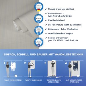 Der Untergrund muss eben, glatt und frei von Fett und Trennmitteln sein und darf nicht saugfähig sein. Vor dem Aufkleben der Fototapete muss der Untergrund und die Qualität des Druckes geprüft werden.