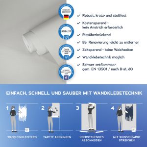 Der Untergrund muss eben, glatt und frei von Fett und Trennmitteln sein und darf nicht saugfähig sein. Vor dem Aufkleben der Fototapete muss der Untergrund und die Qualität des Druckes geprüft werden.