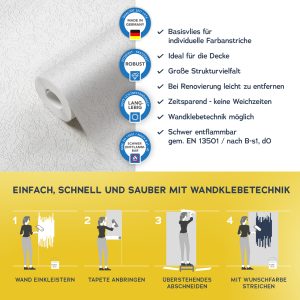 Der Untergrund muss eben, glatt und frei von Fett und Trennmitteln sein und darf nicht saugfähig sein. Vor dem Aufkleben der Fototapete muss der Untergrund und die Qualität des Druckes geprüft werden.