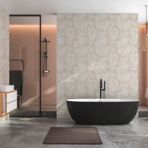 Anschließend werden ca. 10 cm des Abdeckpapiers in der ganzen Breite abgezogen und die Fototapete wird auf den vorbereiteten Untergrund fixiert. Nun wird schrittweise mit dem Gummi-Rakel von der Mitte bis zu den Rändern die Luftblasen und Wasserreste weggedrückt.