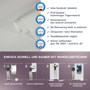 Der Untergrund muss eben, glatt und frei von Fett und Trennmitteln sein und darf nicht saugfähig sein. Vor dem Aufkleben der Fototapete muss der Untergrund und die Qualität des Druckes geprüft werden.