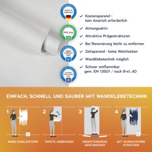 Der Untergrund muss eben, glatt und frei von Fett und Trennmitteln sein und darf nicht saugfähig sein. Vor dem Aufkleben der Fototapete muss der Untergrund und die Qualität des Druckes geprüft werden.