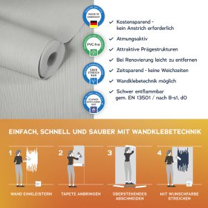 Der Untergrund muss eben, glatt und frei von Fett und Trennmitteln sein und darf nicht saugfähig sein. Vor dem Aufkleben der Fototapete muss der Untergrund und die Qualität des Druckes geprüft werden.