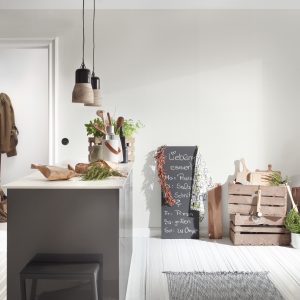 Anschließend werden ca. 10 cm des Abdeckpapiers in der ganzen Breite abgezogen und die Fototapete wird auf den vorbereiteten Untergrund fixiert. Nun wird schrittweise mit dem Gummi-Rakel von der Mitte bis zu den Rändern die Luftblasen und Wasserreste weggedrückt.