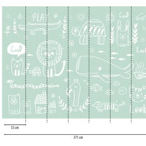 Anschließend werden ca. 10 cm des Abdeckpapiers in der ganzen Breite abgezogen und die Fototapete wird auf den vorbereiteten Untergrund fixiert. Nun wird schrittweise mit dem Gummi-Rakel von der Mitte bis zu den Rändern die Luftblasen und Wasserreste weggedrückt.