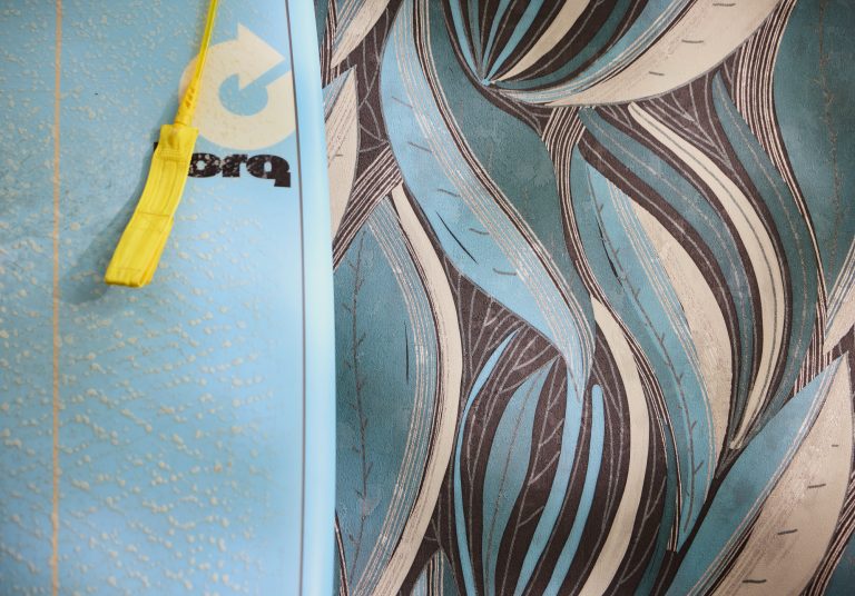 Anschließend werden ca. 10 cm des Abdeckpapiers in der ganzen Breite abgezogen und die Fototapete wird auf den vorbereiteten Untergrund fixiert. Nun wird schrittweise mit dem Gummi-Rakel von der Mitte bis zu den Rändern die Luftblasen und Wasserreste weggedrückt.